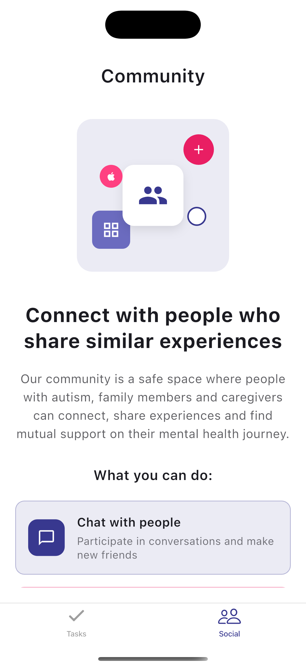 Custom communities: support groups to help you achieve your goals.